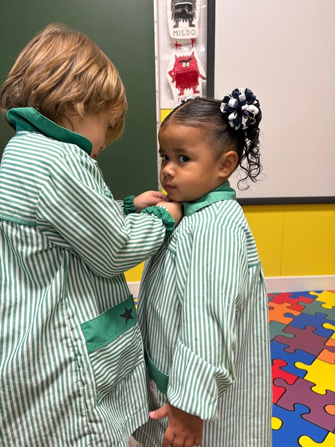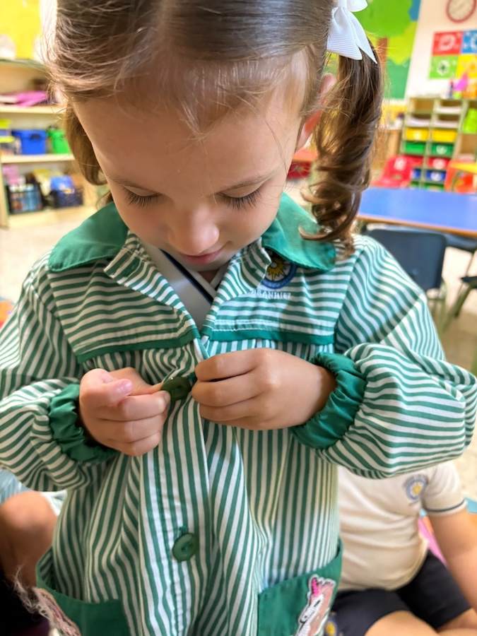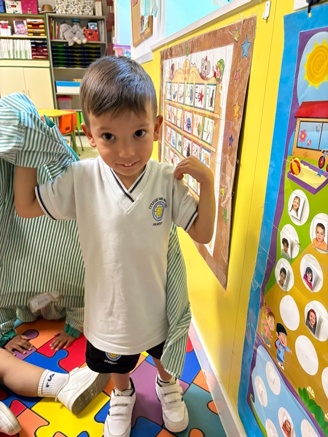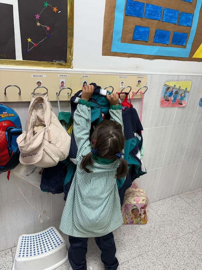 Estamos trabajando para adquirir hábitos y rutinas como, saludar, sacar el pisco, ponerse el babi, abrocharse los botones  y comenzar el día con la asamblea… Este tipo de rutinas proporcionan seguridad a los niñ@s  favoreciend o los aprendizajes más adelante.